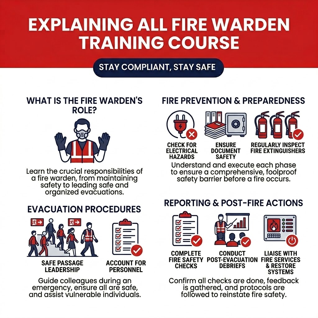 This knowledge will give you a thorough understanding of fire safety and how to successfully fulfil your role as a Fire Warden.